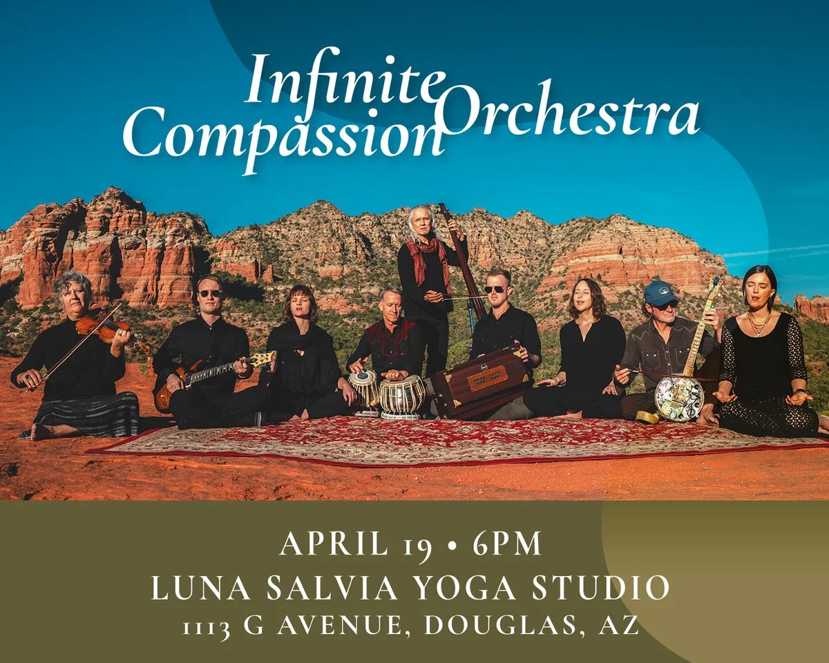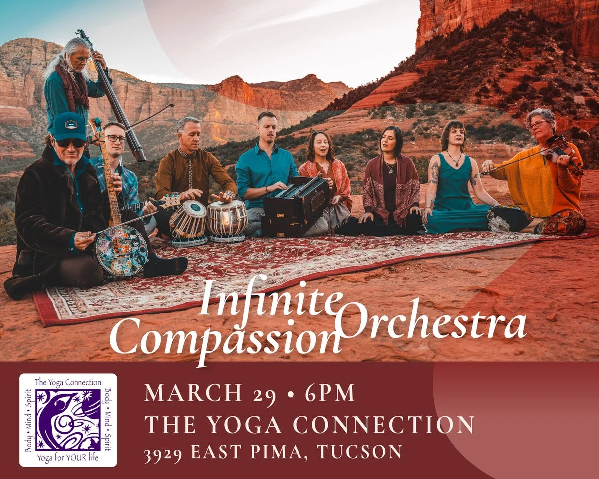 The Infinite Compassion Orchestra is Baja Arizona’s premier kirtan ensemble. We are devoted to Bhakti Yoga and connecting with the Divine through sacred mantras and music.