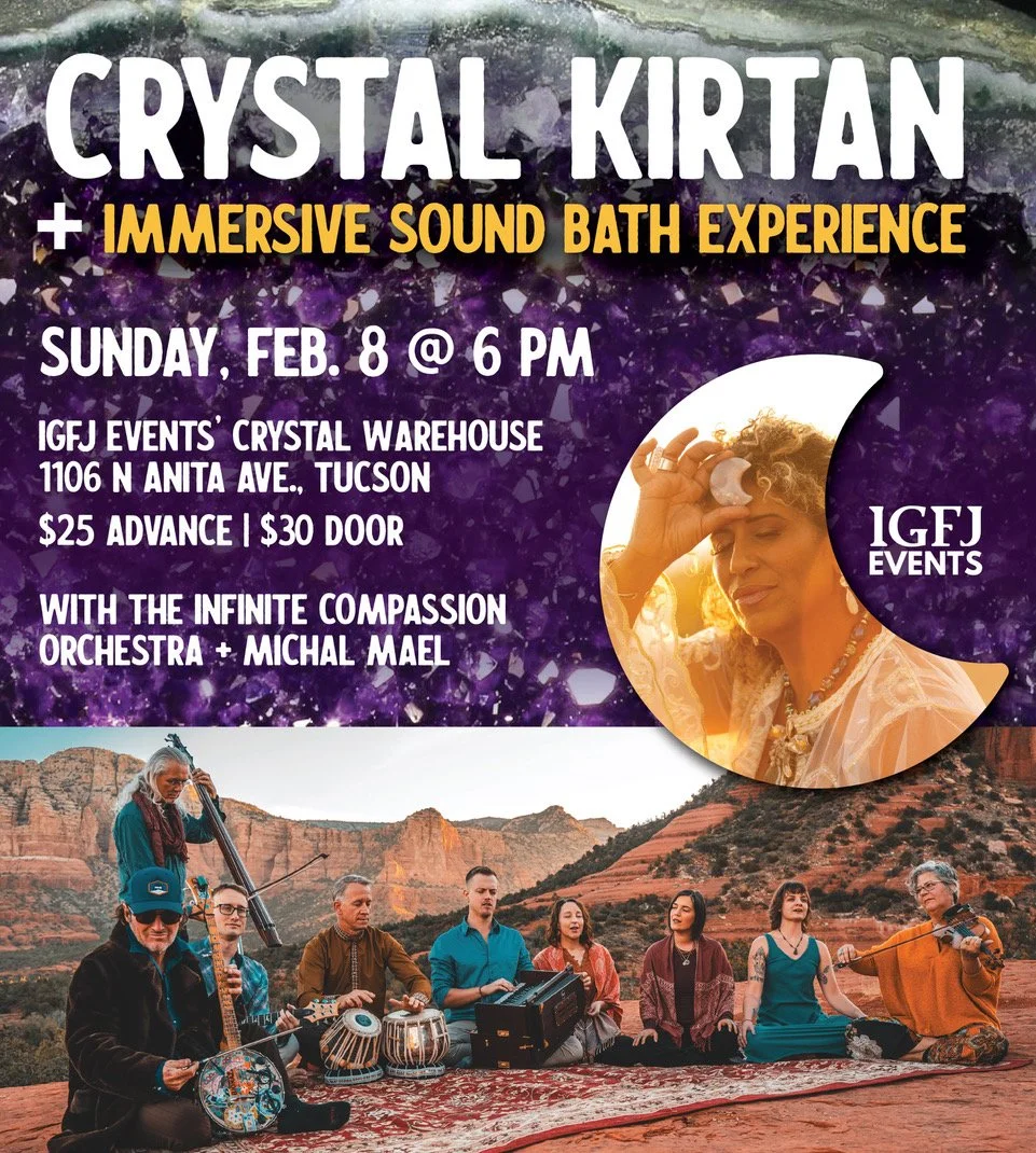 The Infinite Compassion Orchestra is Baja Arizona’s premier kirtan ensemble. We are devoted to Bhakti Yoga and connecting with the Divine within ourselves and each other through sacred mantras and music.